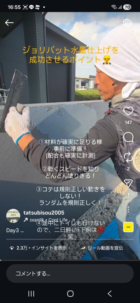 無理な作業・乾燥不十分に注意し施工を行っています。